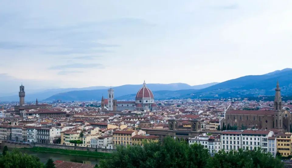 Florence has a humid-subtropical climate with hot, dry summers pushing 33–34°C in Jul–Aug (31–43mm rain) and cool, damp winters around 11–12°C. Autumn is the wettest stretch (137–166mm Oct–Dec). Late spring and early autumn are the sweet spots — warm enough for piazza evenings, cool enough for Uffizi queues.